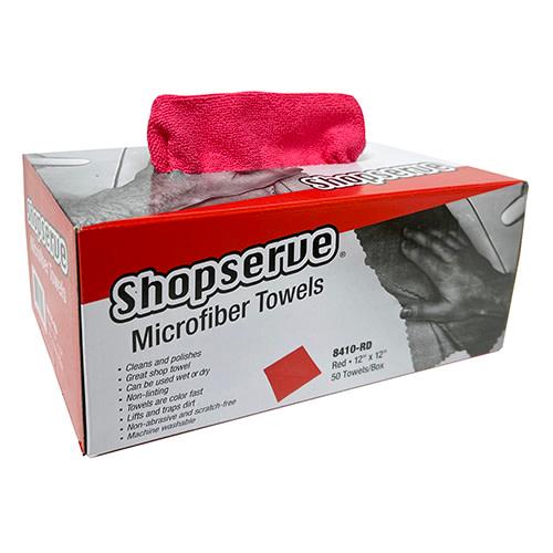 Shopserve® Microfiber Towels, 12" x 12", 180 GSM, Red, 50/box, 6 boxes/Case