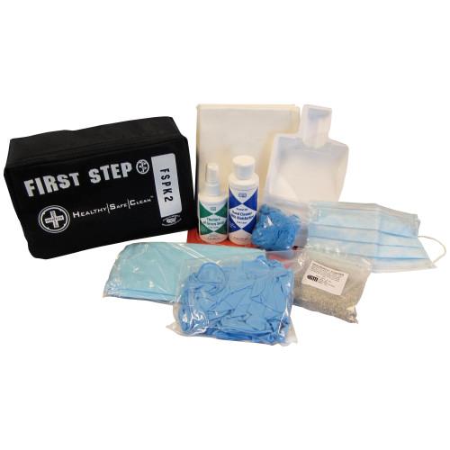 This refillable kit provides personal protection equipment and everything you need to safely clean up a bodily fluid spill.