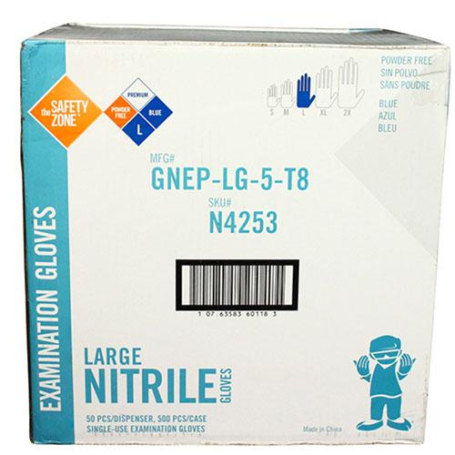 Safety Zone® Heavy-Weight Nitrile Exam Gloves, Powder-Free, 12", 10x50, Blue, 8 mil - Large