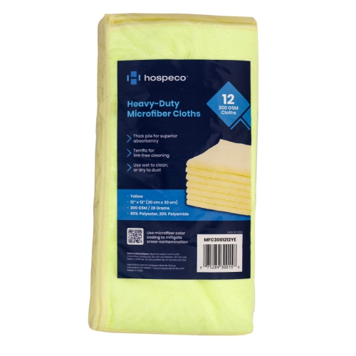 Hospeco® Heavy-Duty Yellow 12x12 300GSM Microfiber Cloth