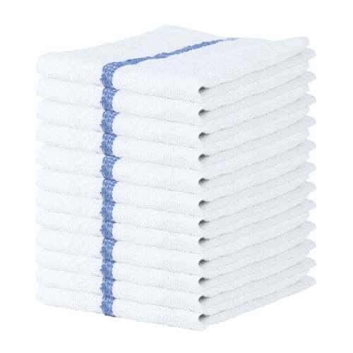 - QUALITY KITCHEN TOWELS: Our professional-grade restaurant white bar mop towels with color center stripes are made of cotton and are absorbent and quick drying. Kitchen terry towels are heavier than most dish rags out there.