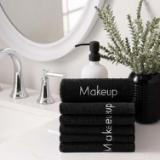 - ELEGANT TOUCH TO ANY HOME – These chic face towels for women feature the word “makeup” embroidered on the plush, black towel. They’re the perfect addition to any bathroom, and even make a beautiful touch to your rental home, Airbnb and much more.