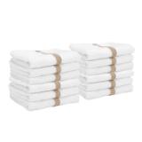 - POWER GYM HAND TOWEL VALUE PACKS: Pick up an economy set of 12 white 16" x 27" gym towels with a color center stripe. Our highly absorbent quick drying hand towels are available in blue, gold, green, beige, pink and grey stripe.