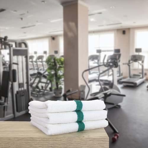 - POWER GYM HAND TOWEL VALUE PACKS: Pick up an economy set of 12 white 16" x 27" gym towels with a color center stripe. Our highly absorbent quick drying hand towels are available in blue, gold, green, beige, pink and grey stripe.