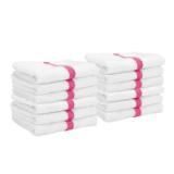 - POWER GYM HAND TOWEL VALUE PACKS: Pick up an economy set of 12 white 16" x 27" gym towels with a color center stripe. Our highly absorbent quick drying hand towels are available in blue, gold, green, beige, pink and grey stripe.