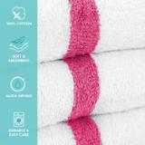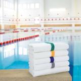 The bold Power Towel line is softer and more absorbent, with brighter whites and deeper colors than typical striped institutional bath and hand towels.