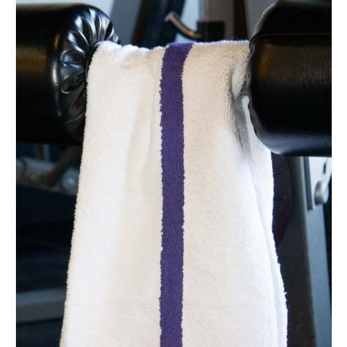 - POWER GYM BATH TOWEL VALUE PACKS: Pick up an economy set of 12 white 22" x 44" gym towels with a color center stripe. Our highly absorbent quick drying bath towels are available in plain white and blue, beige, pink, green, gold, and grey stripe.