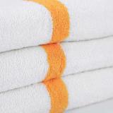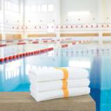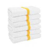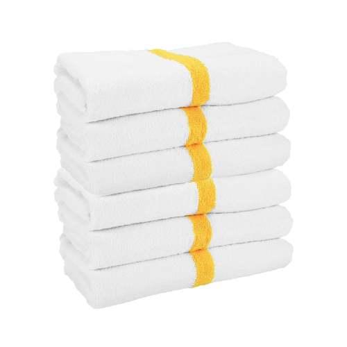 Our 6 lb. single-stripe white power gym/pool towels are comparably priced to similar towels and punch way above their weight. The bold Power Towel line is softer and more absorbent, with brighter whites and deeper colors than typical striped institutional bath and hand towels.