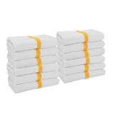 - POWER GYM BATH TOWEL VALUE PACKS: Pick up an economy set of 12 white 22" x 44" gym towels with a color center stripe. Our highly absorbent quick drying bath towels are available in plain white and blue, beige, pink, green, gold, and grey stripe.