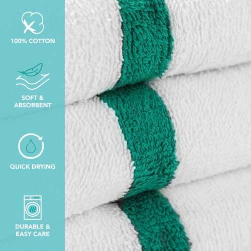 Our 6 lb. single-stripe white power gym/pool towels are comparably priced to similar towels and punch way above their weight. The bold Power Towel line is softer and more absorbent, with brighter whites and deeper colors than typical striped institutional bath and hand towels.