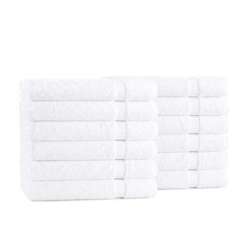 - OUR CORE TOWEL LINE: Our foundational institutional towel collection, the Admiral, is a value line of hospitality towels with a simple cam border. A premium ring spun 86/14 cotton/Polyester blend makes a soft, durable institutional towel with longevity. Double-stitched edges add extra strength. Cotton/poly dries faster and is more wrinkle-resistant than cotton, thus saving time and money on labor and machine wear and tear. Three bath towel sizes, mats, and blue-stripe pool towels are available.