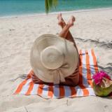 - BEACH TOWEL COLORS: Stand out with our bright and vibrant color options. The beach towel 4 pack comes in six colors: Gray, Orange, Blue, Green, Pink, Beige. These cabana beach towels make a great bath towel set for your bathroom or guest room.