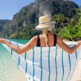 - PREMIUM QUALITY BEACH TOWELS: Our Las Rayas white plush towels are made from 100% ring spun cotton and feature beautiful flat-woven horizontal stripes.