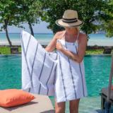 Timeless and unique, the Las Rayas collection is understated yet compelling. A 100% soft ring-spun terry pile is intersected by elegant flat-woven stripes in classic cool colors. The Las Rayas fine pinstripe design has a modern flair that sets it apart from cabana towels. Paired with matching lounge covers. Las Rayas makes a striking presentation for any pool or beach club.