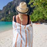 - PREMIUM QUALITY BEACH TOWELS: Our Las Rayas white plush towels are made from 100% ring spun cotton and feature beautiful flat-woven horizontal stripes.