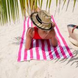 - OVERSIZED POOL TOWEL: Generously sized at 30 x 70 inches, this large beach towel features an oversized surface area for drying. Enjoy the tropical island ambiance with our most popular beach towel, the California Cabana Towel. A perfect fit for any pool c