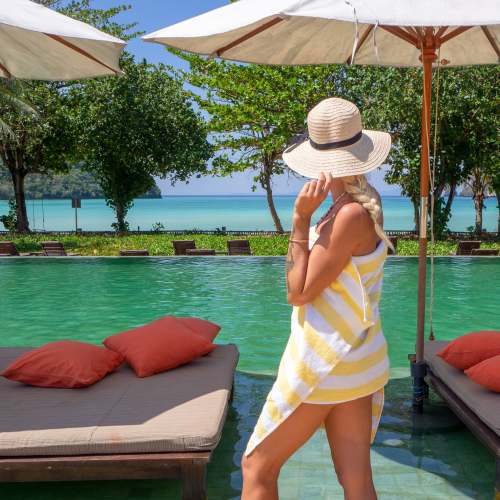 At 30" x 70" and 15 lb/dz, the California Cabana towel is bigger than most on the market today. The towel is beautifully soft due to its 20° ring-spun 100% cotton construction. The collection is yarn-dyed to minimize fading due to sun damage over time.