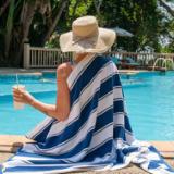 Extra large, extra plush beach, pool, or cabana towels are sure to turn heads in 10 striking color combinations. Wrap yourself in stylish luxury après swim!