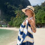 Make a real splash at the pool with Aston & Arden’s elite Pinstripe Resort Towel collection. This is a colorful collection of plush beach towels is designed with a creative new spin on the traditional cabana stripe — a unique pinstripe/wide stripe pattern.