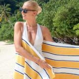 Extra large, extra plush beach, pool, or cabana towels are sure to turn heads in 10 striking color combinations. Wrap yourself in stylish luxury après swim!