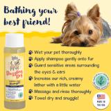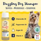 Specially formulated Dazzling Dog Shampoo, with naturally derived ingredients like argan oil, chamomile, and peppermint, softens, moisturizes, and conditions your dog's fur, leaving it silky, shiny, and healthy. Perfect for all breeds and fur types, it’s groomer-approved, pH-balanced, and safe for use with flea and tick treatments. Its rich, salt-free, paraben-free formula gently cleanses without stripping natural oils. Its concentrated formula makes it both economical and effective for home or professional use.