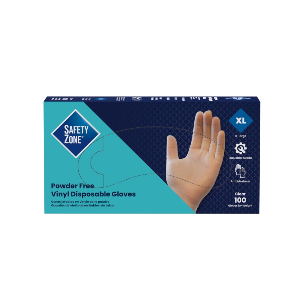 Safety Zone® Vinyl Powder-Free Gloves are engineered to provide cost-effective and practical hand protection for a wide range of everyday work environments including foodservice, janitorial, hospitality, and general facility use. Constructed with 2.5 mil vinyl, these disposable gloves are stronger than basic polyethylene options and deliver dependable comfort and flexibility for frequent tasks. The powder-free design undergoes a chlorination process that makes donning and doffing easier, especially with wet hands. These gloves are 100% latex-free, phthalate-free, and silicone-free, helping minimize allergic reactions and skin irritation while supporting a safer work environment. Certified to meet FDA Rule 110.10 and CFR Title 177.1950 standards for food handling and direct contact during manufacturing or packaging, they support hygiene and regulatory compliance in busy kitchens and workspaces. Clear in color with a smooth surface, these gloves are ideal for a variety of general-purpose applications where reliable hand protection and comfort are essential.