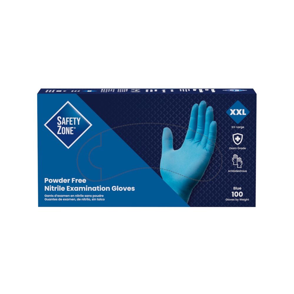 Safety Zone® Nitrile Exam Gloves, Powder-Free, 10x100, Blue, 4 mil - XXL