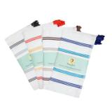 - DISH TOWEL MEASUREMENTS: Our dishcloths sets measure 13 by 13 inches and feature white kitchen towels with color accents. Our dish towels have a classic Windowpane Striped design, making them very beautiful for any kitchen. The set of 12 dishcloths gives a streak free and lint free finish.
