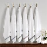 - AEGEAN TURKISH COTTON BATHROOM TOWEL SET: We took no shortcuts with these Turkish towel sets for bathroom. Refusing to compromise on quality, our luxury towel sets are made with high-quality Aegean Turkish cotton. Our classic white towels with an ombre striped border brighten up any bathroom.