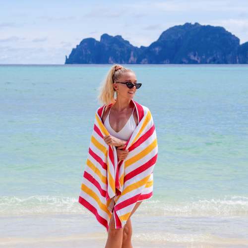 Hospeco® Cabo Cabana Beach Towels, 30x70, 4/pk - 6 pks/cs - Red/Yellow