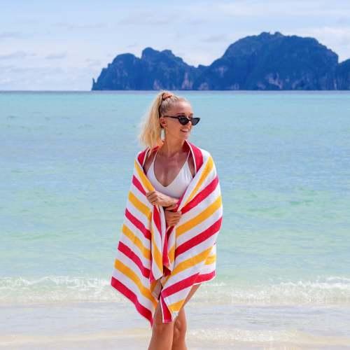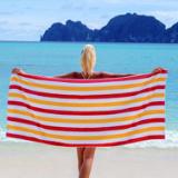 BEACH TOWEL COLORS: Cabo Cabana Towels feature a white base color with alternate colored cabana stripes in seven vibrant color combinations. They make a great bath towel set for your bathroom or guest room.The bright and unique color combinations will make you stand out of the crowd at a beach, pool or resort.