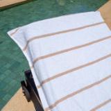 STYLISH OUTDOOR CHAIR COVERS: These Las Rayas pool chair covers are made with soft 100% premium cotton interwoven with polyester flat woven stripes for a unique look at the beach or pool. Our terry towel pool chair covers match our Las Rayas beach towels.
