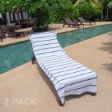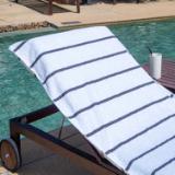 STYLISH OUTDOOR CHAIR COVERS: These Las Rayas pool chair covers are made with soft 100% premium cotton interwoven with polyester flat woven stripes for a unique look at the beach or pool. Our terry towel pool chair covers match our Las Rayas beach towels.