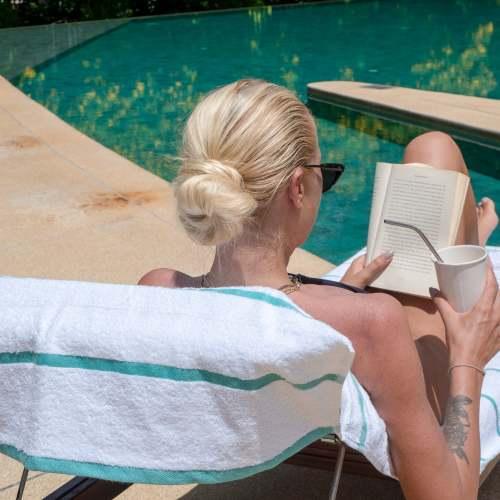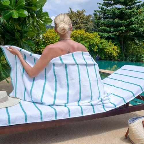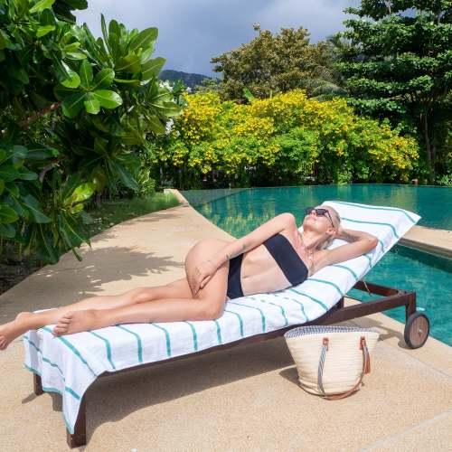ABSORBENT LOUNGE CHAIR COVER: Made with the same 100% ring spin cotton pile as Las Rayas bath and beach towels, Our terry lounge chair cover towel wicks water fast and dries quickly so that you can just relax after a refreshing swim.