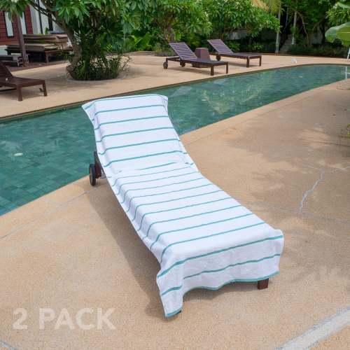 - BEACH CHAIR COVERS ARE BETTER IN PAIRS: Pool goers will be jealous of your matching soft white terry chaise lounge covers. Buy a couple of two packs for the family and stake your claim to the best pool chairs.