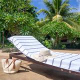 ABSORBENT LOUNGE CHAIR COVER: Made with the same 100% ring spin cotton pile as Las Rayas bath and beach towels, Our terry lounge chair cover towel wicks water fast and dries quickly so that you can just relax after a refreshing swim.