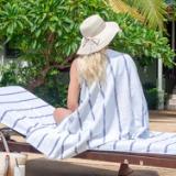 STYLISH OUTDOOR CHAIR COVERS: These Las Rayas pool chair covers are made with soft 100% premium cotton interwoven with polyester flat woven stripes for a unique look at the beach or pool. Our terry towel pool chair covers match our Las Rayas beach towels.