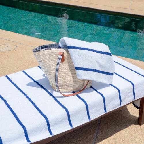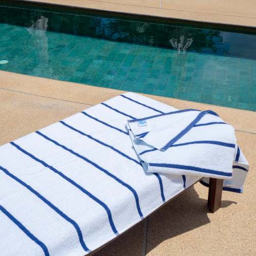 - STYLISH OUTDOOR CHAIR COVERS: These Las Rayas pool chair covers are made with soft 100% premium cotton interwoven with polyester flat woven stripes for a unique look at the beach or pool. Our terry towel pool chair covers match our Las Rayas beach towels.