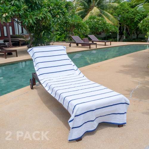 - BEACH CHAIR COVERS ARE BETTER IN PAIRS: Pool goers will be jealous of your matching soft white terry chaise lounge covers. Buy a couple of two packs for the family and stake your claim to the best pool chairs.