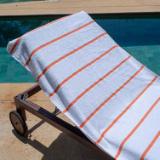 STYLISH OUTDOOR CHAIR COVERS: These Las Rayas pool chair covers are made with soft 100% premium cotton interwoven with polyester flat woven stripes for a unique look at the beach or pool. Our terry towel pool chair covers match our Las Rayas beach towels.