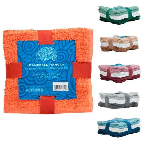 Campbell Ramsey® Washcloths, 12x12, 6/pk - 36 pks/cs - Assorted Colors