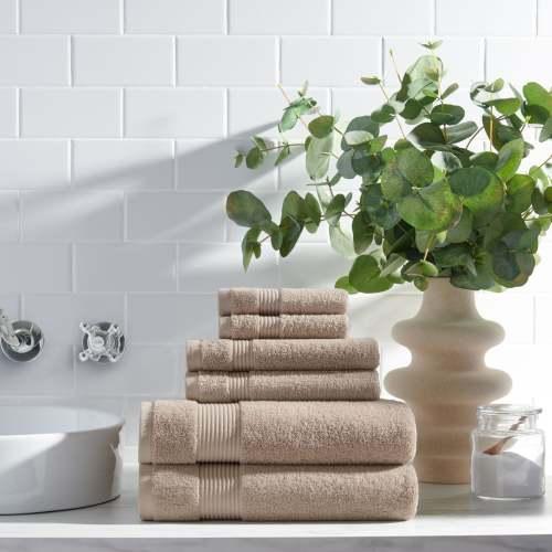 6 Piece Beige Bath Towel Set