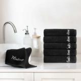 - KEEP YOUR WHITE BATH TOWELS WHITE: Save your white towels from makeup stains with cotton makeup removal fingertip towels and washcloths. Wash black makeup towels separately and keep white towels stain-free. The charming printed embroidery reads “Makeup” in a lovely cursive font. Makeup removal fingertip towels are a pretty, functional accent for the bathroom.