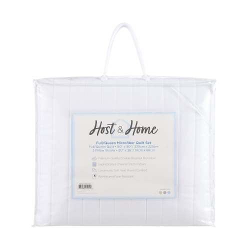 - PREMIUM MICROFIBER QUILT SET: Host & Home is pleased to bring you our cozy microfiber quilt sets complete with pillow shams in four tranquil colors chosen to promote restful sleep and a calming space. This oversized brushed microfiber blanket is expertly quilted in a vertical raised, puffy 1.5” channel stitch stuffed with fluffy poly fill, creating sleek yet cushiony channels for a perfectly comfy and stylish quilt. Pillow shams with matching quilting complete this sophisticated contemporary bedding set.