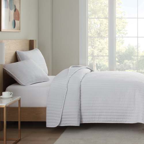 Defying traditional quilted styles, this modern take on the form creates a minimalist modern design that is comfortable as a focal point in any style bedroom. The slim quilted channels appear as puffy textured stripes and will not overpower larger patterns like florals or geometric designs. Our microfiber quilt set is as appropriate in an urban loft as it is in a country farmhouse. Choose from four relaxing colors to complement your decor.