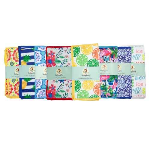 The Sloppy Chef® microfiber printed dishcloths six-pack is made of 100% polyester printed microfiber. There are eight cheerful matching patterns across the line so customers may match their kitchen towels with these dishcloths.
