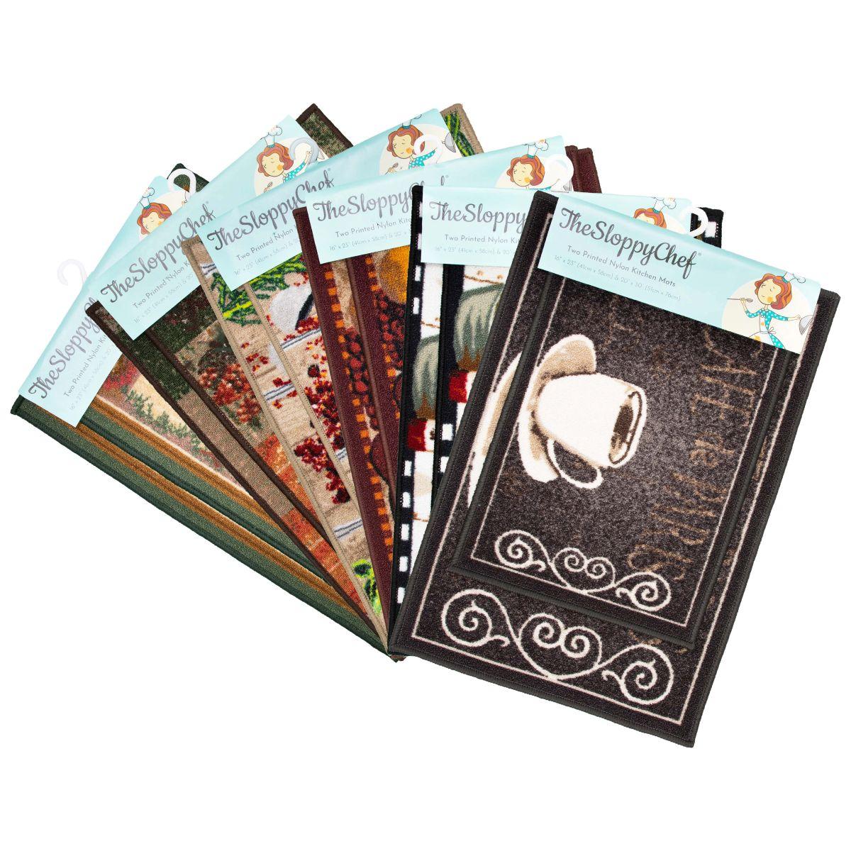 Sloppy Chef Printed Kitchen Area Rug, (2 piece set) Non-Skid Latex Backing