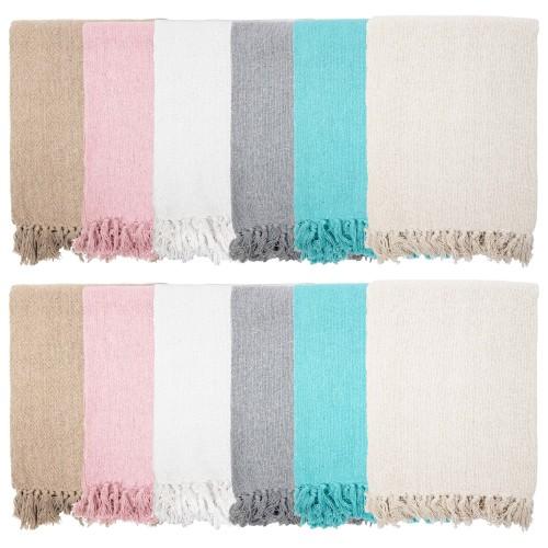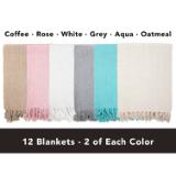 OVERSIZED, NATURAL COTTON THROW BLANKETS: Our cotton blanket throws measure 50" x 70". Much bigger than other standard 50" x 60" blankets. Each case has 12 cozy blankets. There are multiple colors to choose from. All throw blankets are made from the classic herringbone weave.