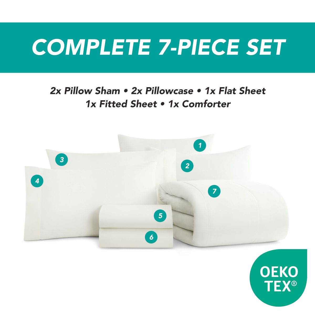 - COMPLETE 7-PIECE SET: Get a total bedding solution in one easy package! This set includes a cozy plush comforter, a fitted and flat sheet, two pillowcases, and two matching shams. Perfect for refreshing your bedroom décor with minimal effort, giving you a modern and stylish look without buying separate pieces.