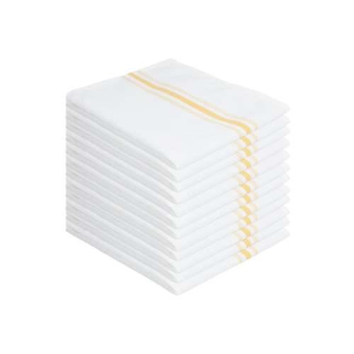 - SET OF 12: 12-pack of Professional and premium quality yarn-dyed striped spun poly napkins feel soft and elegant. These dinner cloth napkins get softer with subsequent washes without unraveling. The hemmed edges give the napkin strength and durability.